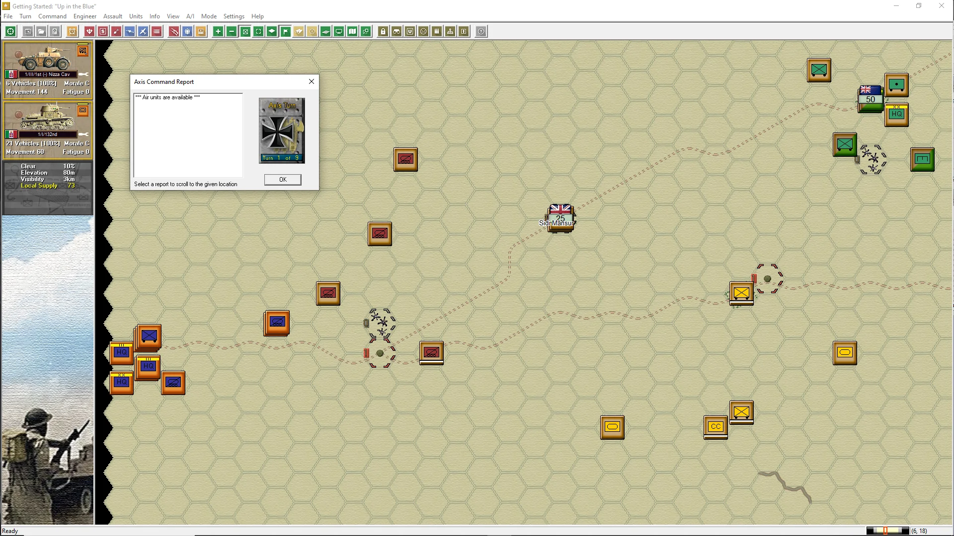 In the summer of 1942, the Afrika Korps was approaching its high-water mark. In a month-long struggle than began at Gazala, Rommel had defeated the 8th Army and driven the British back to Egypt, once again surrounding Tobruk, a prize that eluded him the previous year. Then in a surprise move, he doubled back, and captured Tobruk in a single day before turning his Panzer Army once again toward Alexandria, Cairo and the Nile. But the British would deny him the ultimate prize with a heroic stand at a lonely, unheard of railway stop known as El Alamein.